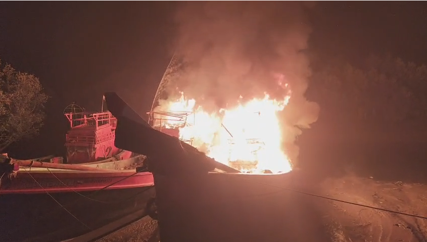 আগুন লেগে পুড়ে গেল দুটি ট্রলার – ঘটনাস্থলে আসে দমকলের একটি ইঞ্জিন