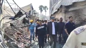 আনন্দপুরে অগ্নিকাণ্ডের ঘটনার পর ঘটনাস্থল পরিদর্শন করতে যান দমকলমন্ত্রী – মন্ত্রীকে ঘিরে বিক্ষোভ