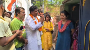 বিজেপির কাউন্সিলর সুতপা মুখার্জি তার পরিবার নিয়ে গেটের সামনে দাঁড়িয়ে তাকে স্বাগত জানান, তারপর প্রার্থী কাউন্সিলরের কাছে আবেদন করেন তার পরিবার সহ ভোট যেন তৃণমূল কংগ্রেসে দেন।
