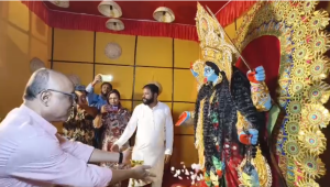 এবারের পুজোর থিম অন্যরকম — নিউ টাউনে অরেঞ্জ সিকিউরিটি সার্ভিসেসের আয়োজনে শ্যামা মায়ের পুজোতে মানুষের ঢল