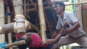 নিজস্ব সংবাদদাতা :: সংবাদ প্রবাহ :: উত্তরপাড়া :: রবিবার ২৬,অক্টোবর :: উত্তরপাড়া পুরসভার ১৯ নম্বর ওয়ার্ডে রাজা প্যারী মোহন রোড ইয়ুথ ফোরাম কালী পুজো কমিটির মন্ডপ খোলা চলছিল। ওই যুবক প্যান্ডেল খুলতে এসেছিলেন।