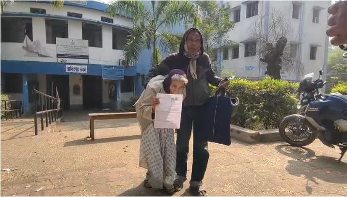 কুঁজো ৭৫ বছরের প্রৌঢ়া জামাইয়ের কাঁধে ভর করে হাজির হলেন ভোটার তালিকা সংক্রান্ত শুনানিতে