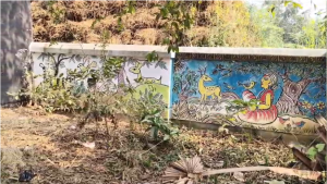গ্রামের পথে হাঁটলেই চোখে পড়ে দেওয়াল জোড়া ক্যানভাস—আলপনা, লোকশিল্প আর আধুনিক ভাবনার অনবদ্য মেলবন্ধন। এই অনন্য শিল্পকর্ম দেখতেই আজ ভিড় জমাচ্ছেন বহু মানুষ।