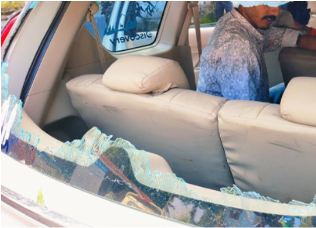 প্রত্যক্ষদর্শীদের দাবি, হঠাৎই কয়েকজন অজ্ঞাতপরিচয় ব্যক্তি গাড়িটিকে ঘিরে ধরে ইট-পাথর ছোড়ে। মুহূর্তেই এলাকায় ছড়ায় আতঙ্ক।