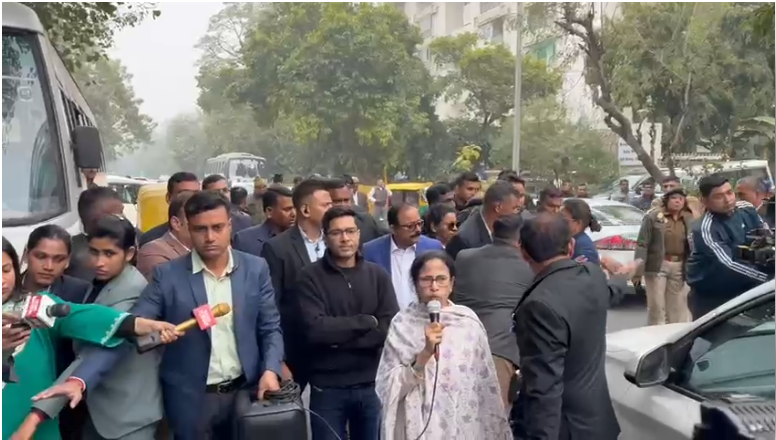 নিজস্ব সংবাদদাতা :: সংবাদ প্রবাহ :: বঙ্গভবন(নয়াদিল্লি) :: মঙ্গলবার ৩,ফেব্রুয়ারি :: দিল্লির সামগ্রিক রাজনীতির নজর কেড়ে নিয়েছেন তিনিই। সকাল থেকে বঙ্গভবনের বাইরে দিল্লি পুলিশের অতি সক্রিয়তা, বাংলা থেকে যাওয়া ‘এসআইআর-এ ক্ষতিগ্রস্তদের’ হেনস্থার অভিযোগ, প্রতিবাদে গর্জে উঠে মমতা বন্দ্যোপাধ্যায়ের রাজধানীর রাস্তায় নেমে আসা-