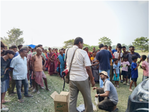 বৃহস্পতিবার সংগঠনের সদস্যরা গধেয়ার কুঠি সংলগ্ন বগড়িবাড়ির হোগলাপাতা, ধাপ্পাডাঙ্গা এবং নলডোবার পাড় এলাকায় তিনটি ফ্লাড শেলটারে আশ্রয় নেওয়া পরিবার গুলির হাতে বিভিন্ন প্রয়োজনীয় সামগ্রী তুলে দেন।জানা গিয়েছে তারা কুয়োর জল ও পানীয় জল শোধন করার ওষুধ, পেটের রোগের ওষুধ, ও.আর.এস, বাচ্চাদের পানীয়, মোমবাতি, দেশলাই সহ নানা ওষুধ এই পরিবারগুলির হাতে তুলে দেন।
