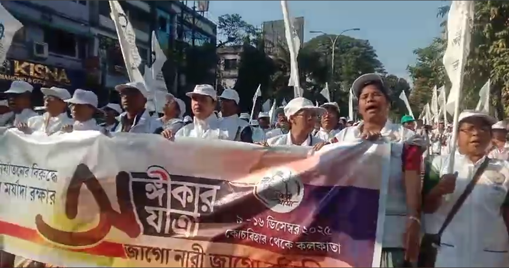 নারী নির্যাতনের প্রতিবাদে শিলিগুড়ির রাজপথে অঙ্গীকার যাত্রা।