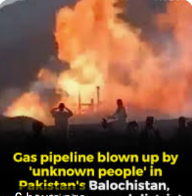 নিজস্ব সংবাদদাতা :: সংবাদ প্রবাহ :: কলকাতা ডেস্ক :: মঙ্গলবার ৩১,মার্চ :: পাকিস্তান জুড়ে চাঞ্চল্য ছড়াল ভয়াবহ গ্যাস পাইপলাইন বিস্ফোরণে। দেশের দক্ষিণ-পশ্চিমাঞ্চল বেলুচিস্তান প্রদেশের একটি গুরুত্বপূর্ণ গ্যাস লাইনে আচমকা বিস্ফোরণে কেঁপে ওঠে বিস্তীর্ণ এলাকা।