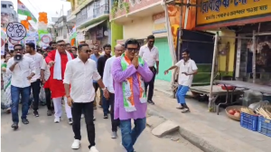 বীজপুর বিধানসভা কেন্দ্রের তৃণমূল প্রার্থী সুবোধ অধিকারী, কাঁচরাপাড়ার বাগমোড় থেকে ২ নম্বর ওয়ার্ডে সাধারণ মানুষ পথচারী ও এলাকার বাসিন্দাদের সঙ্গে জনসংযোগ সারছেন।
