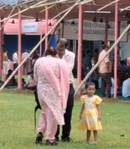 ঠিক তেমনই ছবি ধরা পড়ল বর্ধমানের ডিসিআরসি কেন্দ্রে অর্থাৎ ইউআইটি কলেজ এ । ফুটফুটে কন্যা শিশুকে কোলে নিয়েই মঙ্গলবার ভোটের ডিউটিতে হাজির হলেন মা-বাবা।