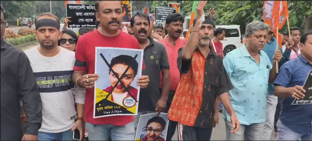 নিজস্ব সংবাদদাতা :: সংবাদ প্রবাহ :: দুর্গাপুর :: রবিবার ৫,অক্টোবর :: বাংলাদেশের অভিনেত্রী জয়া আহসান দুর্গাপুরে দুর্গাপুজো কার্নিভালে বিশেষ অতিথি হিসেবে উপস্থিত হতেই চড়ল রাজনৈতিক পারদ। বিক্ষোভে ফেটে পড়ল বিজেপি।