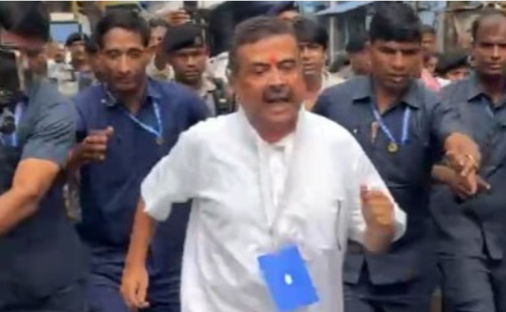 পরিস্থিতি এমন পর্যায়ে পৌঁছায় যে, খোদ শুভেন্দু অধিকারীকে ‘বহিরাগত’ ধরতে কেন্দ্রীয় বাহিনীর জওয়ানদের সঙ্গে রাস্তায় দৌড়তে দেখা যায়। দুপুর সাড়ে ১২টা নাগাদ ভবানীপুর বিধানসভা কেন্দ্রের মুক্তদল মোড় এলাকায় পৌঁছয় শুভেন্দু অধিকারীর গাড়ি।