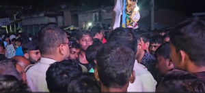 ঘটনার পরেই চাঁদপাড়া গ্রামে তীব্র উত্তেজনা ছড়িয়ে পড়ে। ক্ষুব্ধ গ্রামবাসীরা বিক্ষোভে ফেটে পড়েন এবং বিসর্জনের মিছিল বন্ধ করে দেন। পরিস্থিতি ঘিরে রীতিমতো অশান্তি তৈরি হয়।