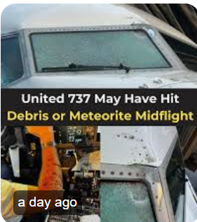 মঙ্গলবার রাতে, মাঝ আকাশে উড়ন্ত অবস্থায় একটি বোয়িং ৭৩৭ যাত্রীবাহী বিমান অল্পের জন্য ভয়াবহ দুর্ঘটনা থেকে রক্ষা পায়, যখন সেটির ডানদিকের সামনের অংশে আছড়ে পড়ে একটি উল্কাপিণ্ডের খণ্ড।ঘটনাটি ঘটে দুবাই থেকে সিঙ্গাপুরগামী ফ্লাইট নম্বর BG-737-এ। স্থানীয় সময় রাত প্রায় ১১টা ৪৫ মিনিটে, বিমানের ক্রু হঠাৎ একটি প্রচণ্ড শব্দ শোনেন এবং ককপিটে হালকা ঝাঁকুনি অনুভব করেন। পাইলট সঙ্গে সঙ্গে জরুরি সতর্কতা জারি করে বিমানটিকে স্থিতিশীল রাখেন।