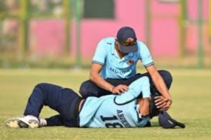 সজল দাশগুপ্ত :: সংবাদ প্রবাহ :: স্পোর্টস ডেস্ক :: শনিবার ২৭, ডিসেম্বর :: জয়পুরের সোয়াই মান সিং স্টেডিয়ামে মুম্বই বনাম উত্তরাখণ্ড ম্যাচে ভয়াবহ দুর্ঘটনা। ফিল্ডিং করতে গিয়ে গুরুতর আহত হন রোহিত শর্মার ওপেনিং পার্টনার অঙ্গকৃষ রঘুবংশী।