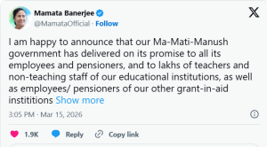 মুখ্যমন্ত্রী বলেন, রাজ্যের আর্থিক পরিস্থিতি বিবেচনা করেই এই সিদ্ধান্ত নেওয়া হয়েছে। তিনি দাবি করেন, সরকারি কর্মচারীদের স্বার্থ রক্ষায় রাজ্য সরকার সবসময়ই ইতিবাচক ভূমিকা নিয়েছে। সেই কারণেই দীর্ঘ আলোচনার পর বকেয়া ডিএ দেওয়ার বিষয়ে সরকার সম্মত হয়েছে।