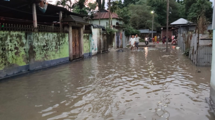 নিজস্ব সংবাদদাতা :: সংবাদ প্রবাহ :: মাথাভাঙ্গা :: রবিবার ৫,অক্টোবর :: গত কয়েক ঘণ্টার লাগাতার বৃষ্টিতে মাথাভাঙ্গা শহরের একাধিক এলাকায় শুরু হয়েছে জল জমে যাওয়ার সমস্যা। মুষলধারে বৃষ্টির কারণে শহরের প্রধান সড়ক থেকে শুরু করে উপশহর অঞ্চলের রাস্তাগুলিও বৃষ্টির জলে প্লাবিত হয়েছে।স্থানীয় সূত্রে জানা গিয়েছে, মাথাভাঙ্গা কলেজ পাড়া, স্টেশন রোড, হাসপাতাল সংলগ্ন এলাকা ও পুরাতন বাজার এলাকায় রাস্তাজুড়ে হাঁটুসমান জল জমে গেছে। এতে সাধারণ মানুষ, বিশেষ করে অফিসযাত্রী ও স্কুলপড়ুয়াদের চরম দুর্ভোগে পড়তে হচ্ছে।