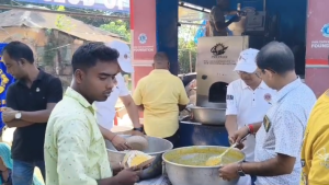 চোখের সামনে মেশিনের দ্বারা রুটি তৈরি হয়ে থাকে। আজকে লায়ন্স ক্লাব রয়েলসের পক্ষ থেকে ২০০০ জন মানুষের হাতে রুটি সবজি জলের ব্যবস্থা করেছেন। সকাল ১১ টা থেকে ৪ টা পর্যন্ত এই কর্মসূচি চলবে।