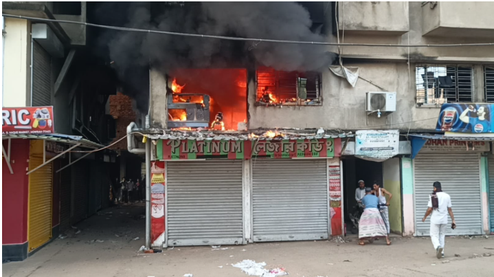 ঘন জনবসতি লাগোয়া মার্কেট বহুতলে পোশাক সহ বিভিন্ন সামগ্রী মজুদ এবং বহু মানুষের উপস্থিতি। যেকোনও মুহূর্তে অগ্নিকাণ্ড ভয়াবহ রূপ নিতে পারে। আতঙ্কিত হয়ে পড়ে স্থানীয় মানুষ।আগুন দেখে স্থানীয় মানুষ আগুন নেভানোর চেষ্টা করে। আগুন ক্রমশ ভয়াবহ আকার ধারণ করে। খবর দেওয়া হয় দমকলে, কিছুক্ষণের মধ্যে ঘটনাস্থলে দমকলের ইঞ্জিন এসে পৌঁছয়। বেশ কিছুক্ষণের চেষ্টায় আগুন নিয়ন্ত্রণে আসে।