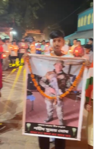 শহীদ সুজয় ঘোষ কে শ্রদ্ধা জানাতে মোমবাতি হাতে মৌন মিছিল বীরভূমের লাউজোরে।