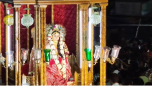 নিজস্ব সংবাদদাতা :: সংবাদ প্রবাহ :: নবদ্বীপ :: শনিবার ৮,নভেম্বর :: নবদ্বীপের রাস ও আরং শেষ হতেই শান্তিপুরের ভাঙ্গা রাস নিয়ে মেতে উঠেছে সকলে। লক্ষ লক্ষ মানুষ ভিড় জমিয়েছে শান্তিপুরের রাজপথে। হরিনাম সংকীর্তন এর মধ্য দিয়ে বর্ণাঢ্য শোভাযাত্রা সহকারে স্বামী বাড়ির বিগ্রহকে প্রথমে বের করা হয়।আর যা দেখতে লক্ষ লক্ষ মানুষের ভিড় জমে শান্তিপুরের রাজপথে। শান্তিপুরের ভাঙ্গা রাসের মুখ্য আকর্ষণ রাইরাজা। রাই রাজা হল একটি পৌরাণিক প্রথা। রাধার প্রতীক হিসেবে ব্রাহ্মণ বাড়ির কুমারী মেয়েদের রাজকীয় পোশাকে সিংহাসনে বসিয়ে পরিক্রমা করা হয় হরিনাম সংকীর্তন এর মাধ্যমে।
