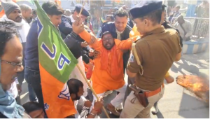 নিজস্ব সংবাদদাতা :: সংবাদ প্রবাহ :: চন্দননগর :: রবিবার ১১,জানুয়ারি :: রাজ্যের বিরোধী দলনেতা শুভেন্দু অধিকারীর উপর তৃণমূল কংগ্রেসের হামলার অভিযোগের প্রতিবাদে রবিবার চন্দননগর তালডাঙা মোড়ে বিক্ষোভ কর্মসূচি পালন করল বিজেপি।