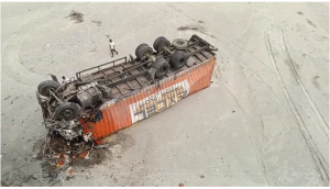 পুলিশ ও স্থানীয় সূত্রে জানা গিয়েছে, ভোরের দিকে সেতুর উপর দিয়ে যাওয়ার সময় নিয়ন্ত্রণ হারিয়ে একে অপরের সঙ্গে ধাক্কা খায় দু’টি লরি। সংঘর্ষের জেরে একটি কন্টেনার লরি সেতুর রেলিং ভেঙে প্রায় ৪০ ফুট নীচে খাদে পড়ে যায়। ঘটনাস্থলেই গুরুতর জখম হন চালক।