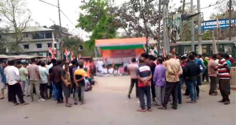 সজল দাশগুপ্ত :: সংবাদ প্রবাহ :: শিলিগুড়ি :: সোমবার ৯মার্চ :: রেল হকারদের উপর লাগাতার হয়রানির অভিযোগ তুলে নিউ জলপাইগুড়িতে অবস্থান বিক্ষোভে অল বেঙ্গল হকার ইউনিয়ন। সংগঠনের ডাকে এবং তৃণমূল কংগ্রেসের শ্রমিক সংগঠনের সমর্থনে এই বিক্ষোভ কর্মসূচি অনুষ্ঠিত হয়।