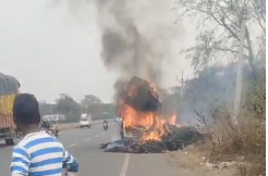 জাতীয় সড়কে অ্যাম্বুলেন্সে আগুন , এলাকায় চাঞ্চল্য