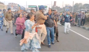 বিজেপি কর্মীদের সঙ্গে পুলিশের সংঘর্ষ, ১৯ নম্বর জাতীয় সড়কে তীব্র উত্তেজনা।