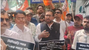 বিধায়ক শংকর ঘোষের নেতৃত্বে পানিটাংকি ফাঁড়িতে বিজেপির বিক্ষোভ কর্মসূচি।