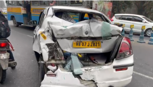 সরকারি বাসের সজোরে ধাক্কা চার চাকার ছোট গাড়িতে ফোর্ট উইলিয়ামের কাছে